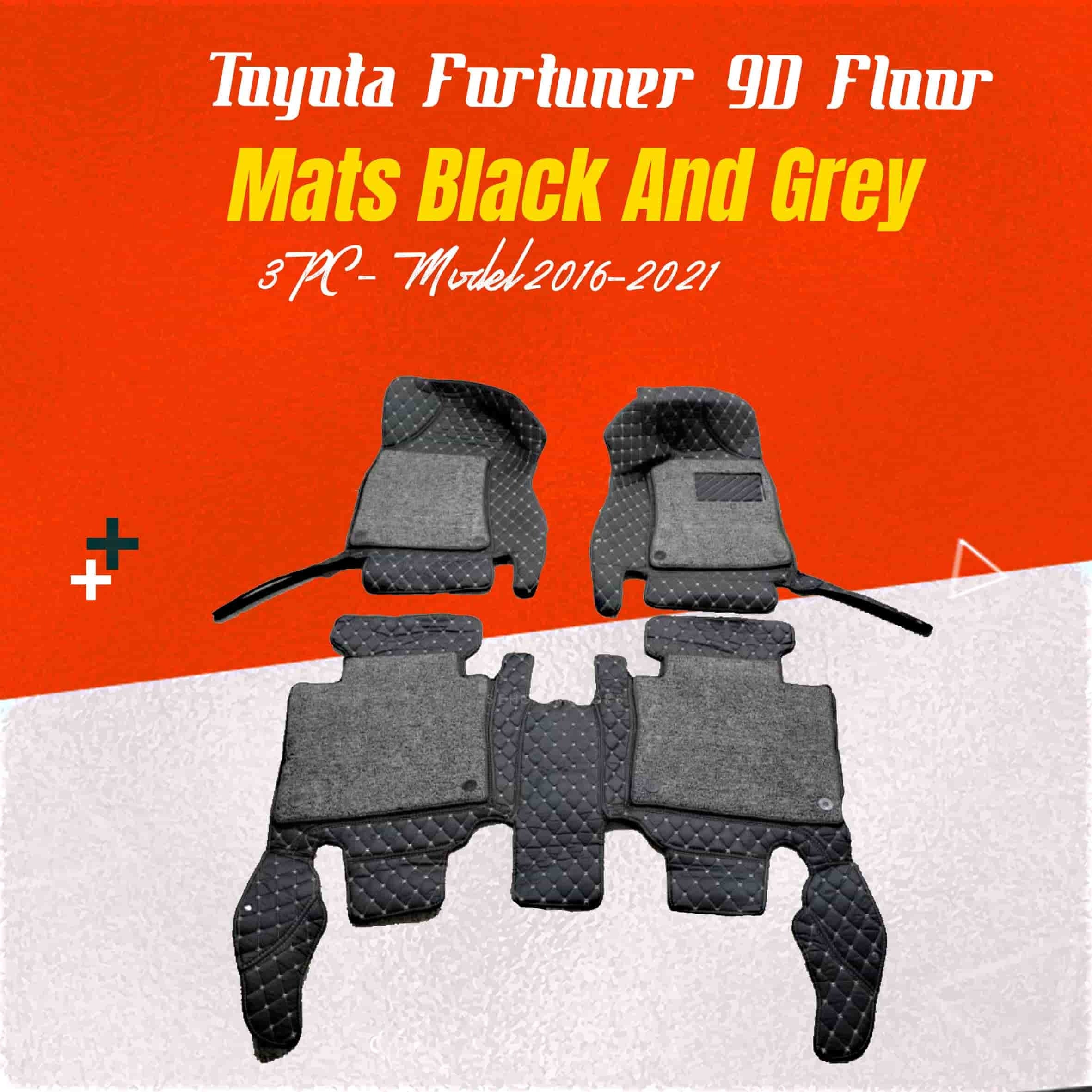 Toyota Fortuner 9D Diamond Floor Mats Black Grey Stitch With Grey Grass For Models 2012 2013 2014 2015 Available at ELEVEN MOTOR SPORTS