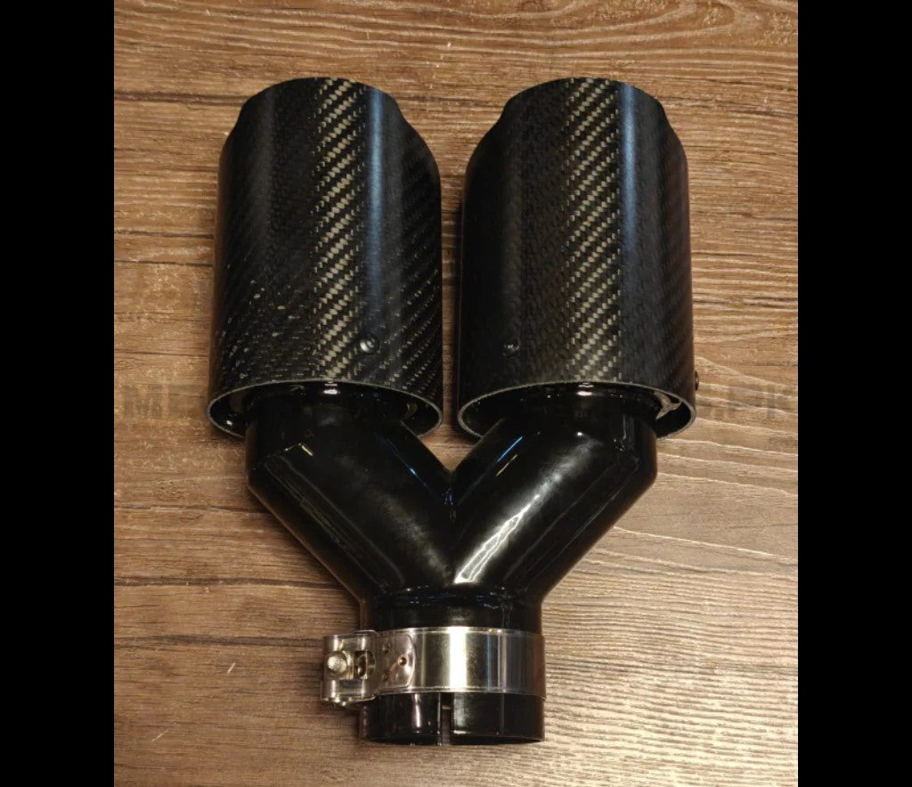 Elevate your vehicle’s style and performance with the Carbon Fiber + Gloss Black Dual Exhaust Tips V2 from Eleven Motor Sports. Expertly crafted with precision, these premium exhaust tips combine aggressive carbon fiber detailing with a sleek gloss black finish for a bold, modern look. Built from high-quality, heat-resistant materials, they not only enhance the visual appeal but also deliver a subtle boost in exhaust flow and sound. A must-have upgrade for any enthusiast looking to add a performance-inspired touch to their ride.