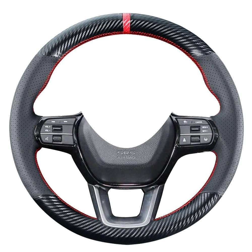Carbon Fiber Leather Steering Cover With Red / Black Stitching  Civic 2022 2023 2024 11th Generation  OEM Fitment  Available at ELEVEN MOTOR SPORTS